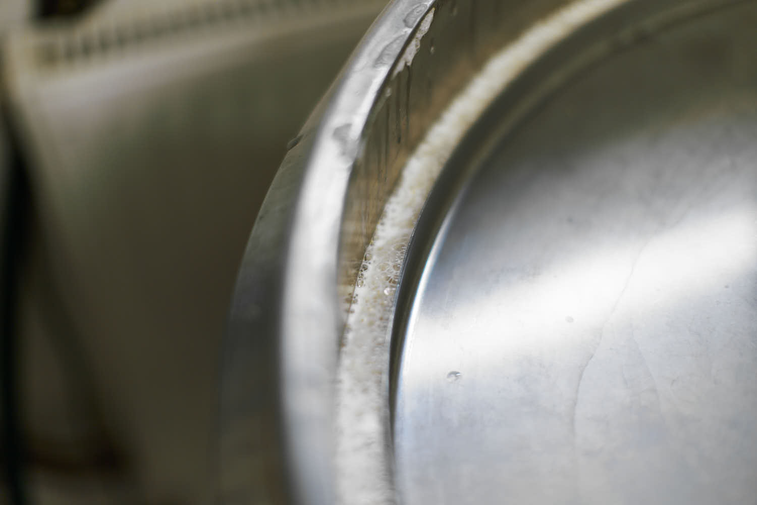Här är en närbild på det skum som bildas när jag övernatt låter en skvätt jäst ihop med socker ta bort allt syre från mäskvattnet. Det ser inte så vackert ut men det doftar lite nybakat bröd när man kommer in i bryggeriet på morgonkvisten och det är ganska trevligt faktiskt, även för någon som knappt äter bröd längre.