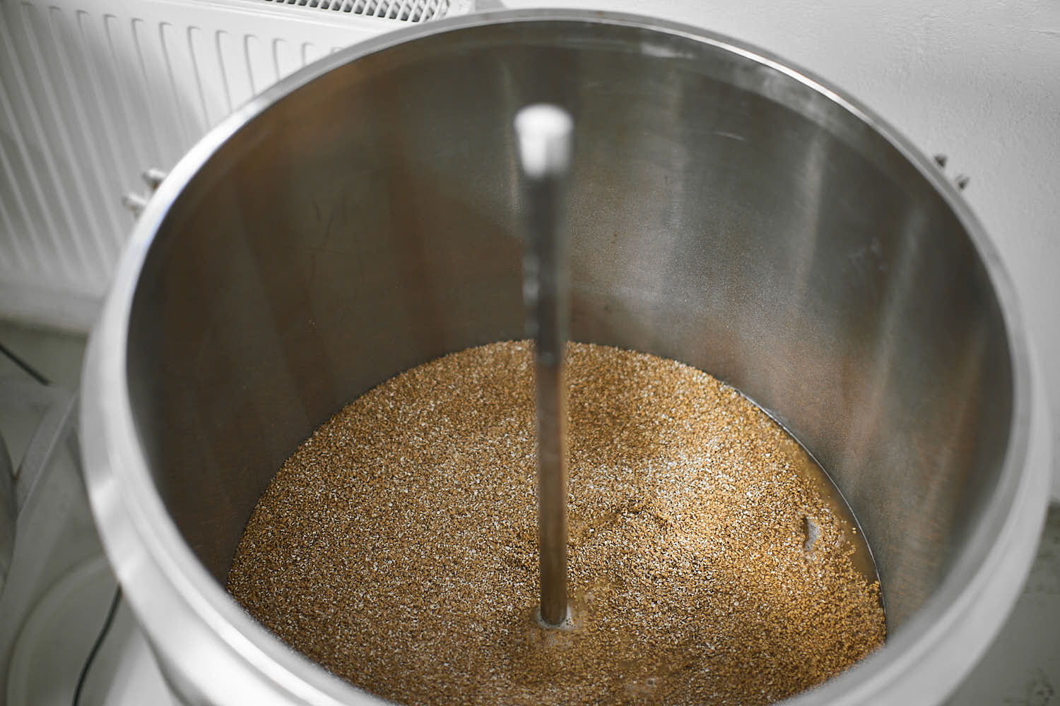 Vetemalt är något mindre i storlek än kornmalt så standardinställningen 1,2mm på min maltkross är på tok för stor. Jag har en trevalskross (MonsterMill MM3) där första valsparet är låst för att bara avlägsna eller krossa bort skalen där andra valsparet krossar kärnan i vald storlek. Jag har gärna en ganska smal inställning på krossen men inte så smal att det bråkar med Braumeistern som gärna vill ha väldigt grov krossning. Därför har jag ofta haft ett mellanting på 1,0mm för att det ska funka med bägge bryggverken men när det kommer till vetmalt och weißbier borde jag verkligen gå ner i storlek för mäskutbytet blir minst sagt dåligt. Jag hade en period när jag var nere på 0,7-0,8mm och tyckte det fungerade bra men så ökade jag avståndet i samband med att krossen bråkade med mig. Jag vet att det finns en del som dubbelkrossar sin malt dvs låter den gå genom kvarnen två gånger men det är dels väldigt tråkigt med mina större mängder men så tycker jag även att vinsten just med vetemalt är minimal, den åker i princip rätt igenom på omgång två.