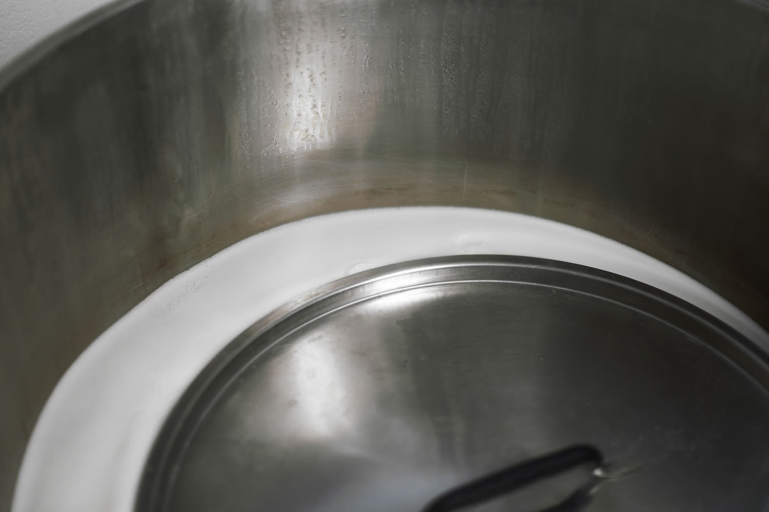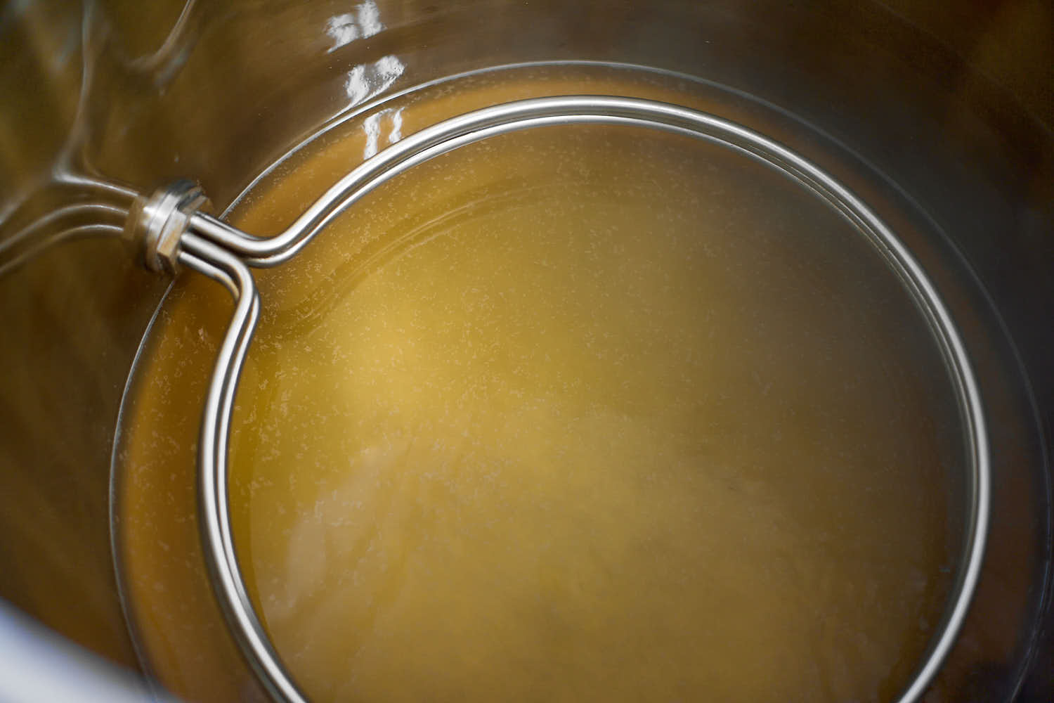 Här är alfaamylaserastens vatten på plats och det blev omöjligt att ha på något ock för att behålla värmen. Tur att mina kärl har ca 5 cm isolering runt om.