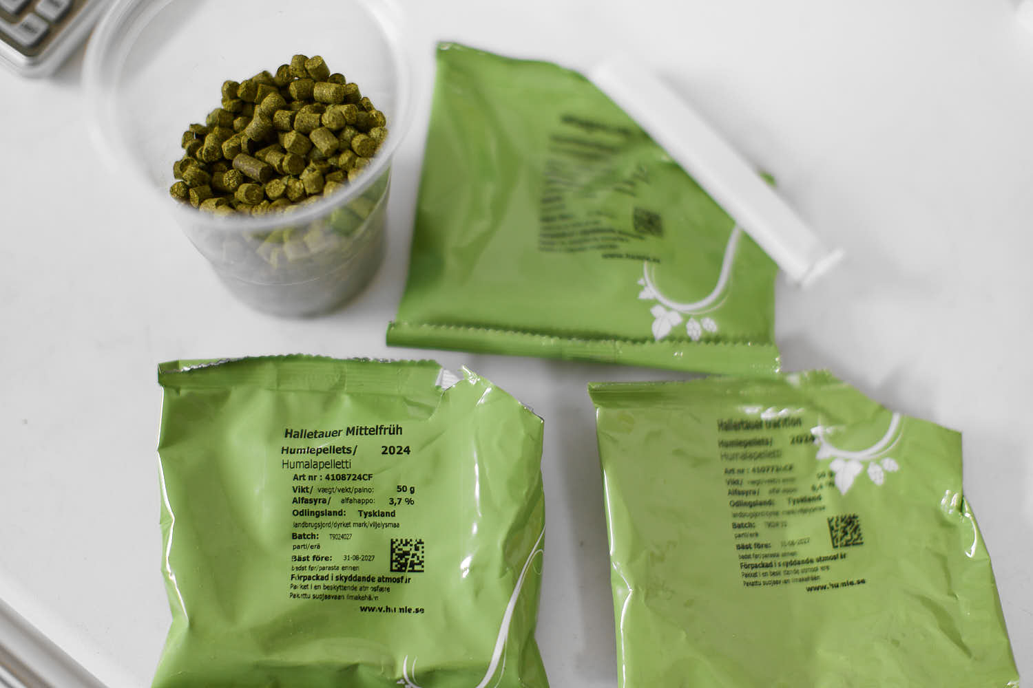 Maltmässigt har jag helt plockat bort all Münchnermalt från mitt pilsnerrecept då jag tycker maltsmaken blir något för dominerande, speciellt med Weyermanns Barkes Münchnermalt som är en riktig smakbomb. Av samma anledning använde jag standard Weyermann Pilsnermalt och inte Barkevarianten. De fina eleganta maltsmakerna ska såklart finnas där men jag vill ha en accentuerad och dominant humleprofil i min pils, inte minst för att särskilja den från min maltpräglade helles. I vanlig ordning använde jag även Syramalt som jag räknar som basmalt alternativt processhjälpmedel i mitt receptskapande.
