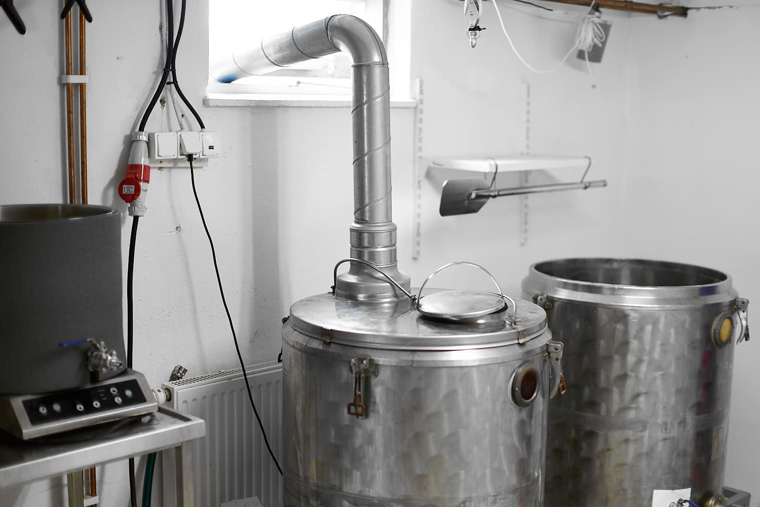 Min passiva ventilering som fungerar väldigt bra. När jag inte har den på, i samband med att jag skummar av uppkoket, blir det dock väldigt mycket ånga i bryggeriet så jag brukar öppna garageporten då vilket är tråkigt på vintern.